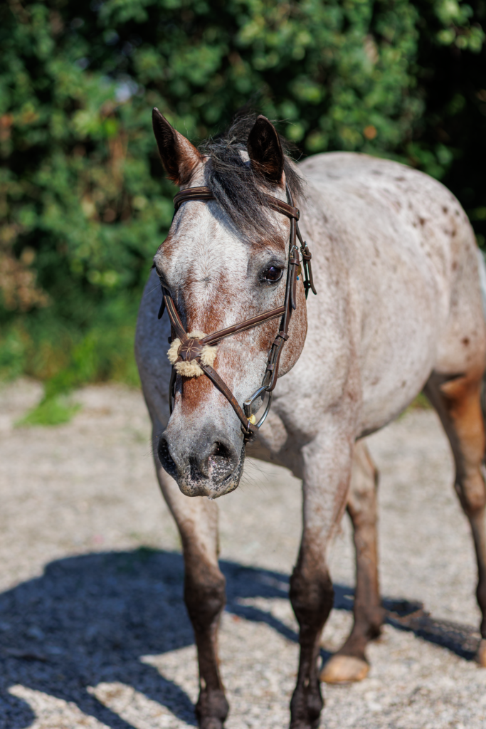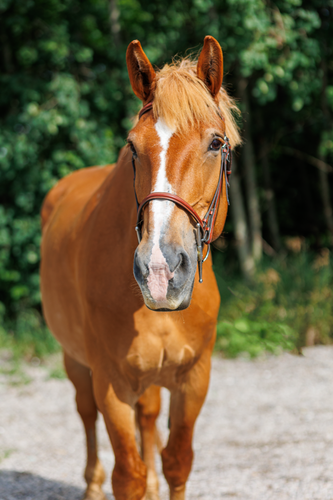 Sunny earned his name because of his flaxen mane and sunny disposition. He shares his breed with Bella and, much like her, likes to take his time. He has lovely movement on the flat and is learning the ropes of jumping with our advanced riders. Sunny loves taking care of our younger and beginner riders and can often be found in our flat classes at our in-house shows.